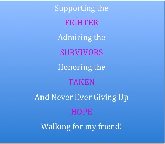 To those who are affected by this heart-breaking ailment, let me just say the following words that I read on the tee-shirt of one of the participant: